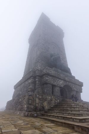 Fog over Monument to Liberty Shipka at Saint Nicholas peak, Stara Planina (Balkan) Mountain, Bulgaria