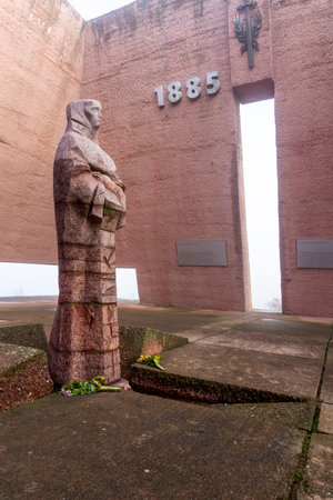 GURGULYAT, BULGARIA - DECEMBER 15, 2020: Pantheon Mother Bulgaria, dedicated to the fallen soldiers of the Serbo-Bulgarian War of 1885, Gurgulyat village, Bulgaria
