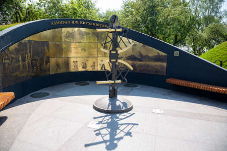 St. Petersburg, Russia - July 16, 2021: Installation on the Alley of Heroes of the Russian Fleet in the Park Island of Forts in Kronstadt, St. Petersburg
