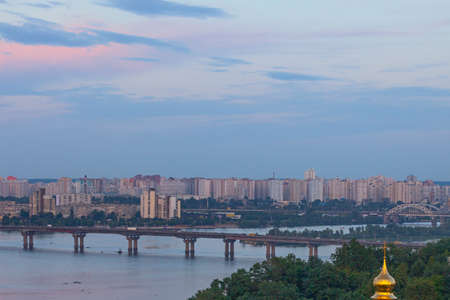 Panorama of the city of Kiev with a view of the Dnieper River, the historical and industrial districts of the city and the left bank