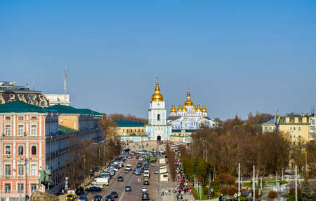 Kyiv, Ukraine, with a view of the St Michaels Golden - Domed Monastery and traffic