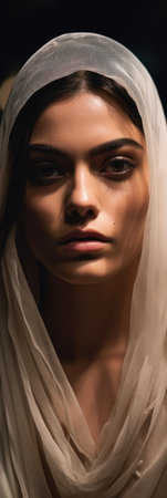 portrait of beautiful young woman in white veil, isolated on black, generative ai