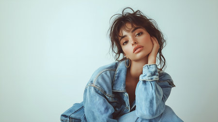 Premium fashion photography showcasing a contemporary denim look, highlighted by clean studio lighting and a minimalist aesthetic. AI-generated