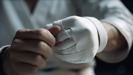 Closeup of male karate fighter hands