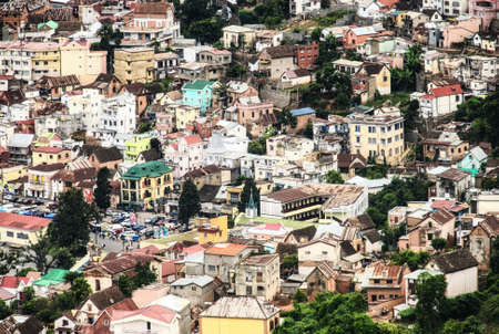 Antananarivo, french name Tananarive, short name Tana, Very poor capital and largest city in Madagascar, Madagasikara republic. View from top to Central Antananarivo cityscape.