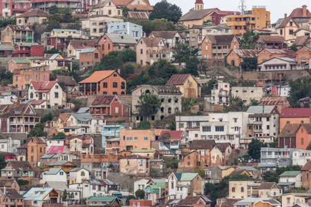 View of the densely packed houses on one of the many hills of Antananarivo, the capital city of Madagascar