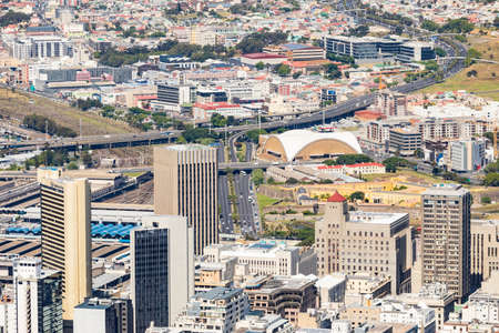 Cape Town, South Africa - October 15, 2019: Elevated view of Cape Town South Africa Central Business District and surrounds