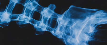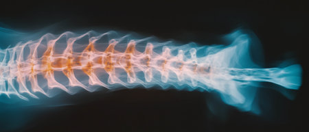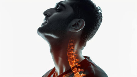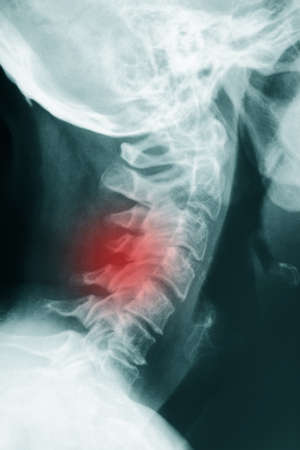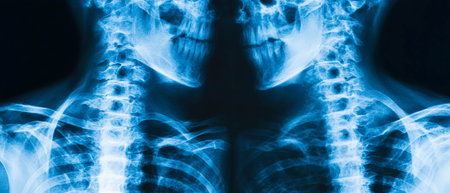 X-ray view of human cervical spine with vivid contrast highlighting structures and shadows