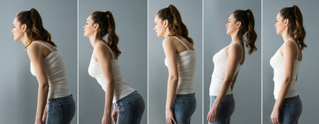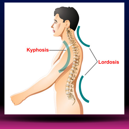 Diseases of the spine. Scoliosis, lordosis, kyphosis. Body posture defects. Back curvature. Spinal deformity types. Medical disease infographic. Diagnostic symptom. Vector illustration
