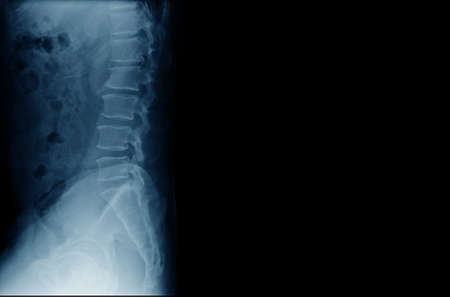 lateral view x-ray banner of lumbar spine with degenerative change and spur