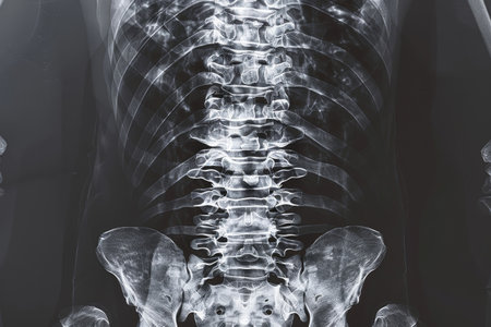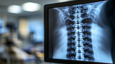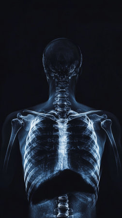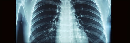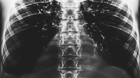 High-resolution X-ray image depicting the chest area, highlighting the rib cage and spinal structure, useful for educational and medical purposes.