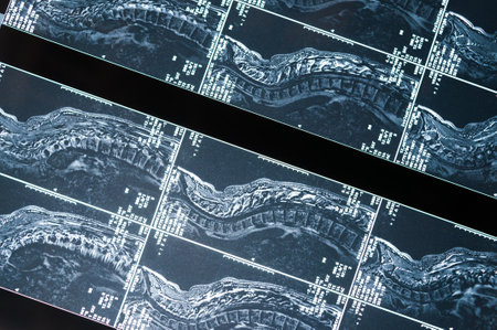 Magnetic resonance imaging, MRI, computed tomography, x-ray image. Cross section of the spine