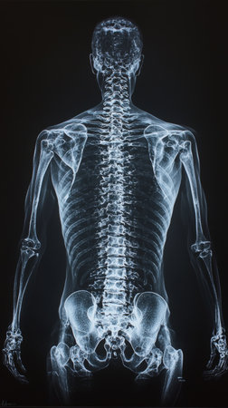 Visual representation of human skeletal structure with focus on spine and pelvis
