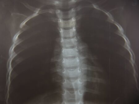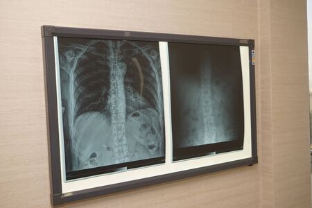 X-ray of the bones of the back of the vertebrae, lungs and chest in case of scoleosis and curvature of the spine