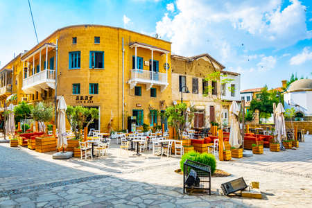 LEFKOSA, CYPRUS, AUGUST 24, 2017: Tourist restaurants waiting for customers at Lefkosa, Cyprus
