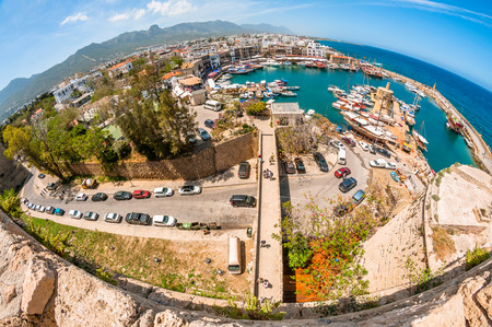 KYRENIA, CYPRUS - FEBRUARY 21: View of Kyrenia harbour from castle walls on February 21, 2015