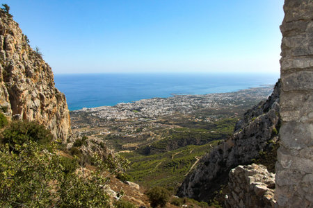 Kyrenia/Girne viewed from St. Hilarion castle in Cyprus