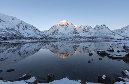 Frozen fjords in Norway, beautiful sunlight and reflection in the water