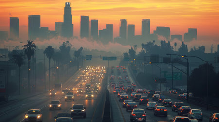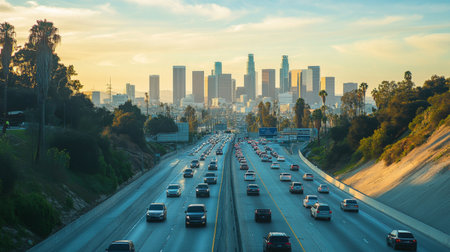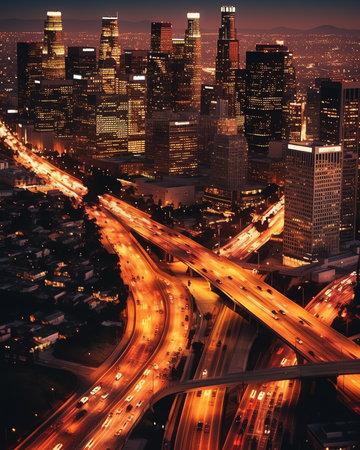 Generative AI : Scenic Los Angeles city cityscape at twilight