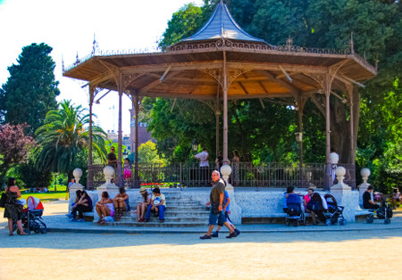 CATANIA, ITALY - CIRCA JUNE 2018: View on people as they pass by at the historic Bellini Garden park on a sunny day circa June 2018 in Catania, Italy.