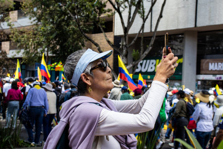 BOGOTA, COLOMBIA - MARCH 6, 2024. March asking for Gustavo Petro impeachment. Peaceful protest march in Bogota Colombia against the government law reforms.
