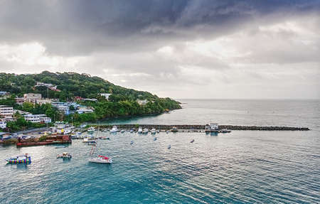 Republic of Trinidad and Tobago - Tobago Sunrise on island - Scarborough city - The harbor - Caribbean sea