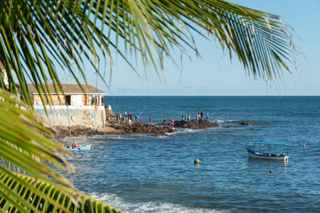 Salvador, Bahia, Brazil - April 25, 2021: View of the Rio Vermelho fishermen colony on a day of heavy fishing.
