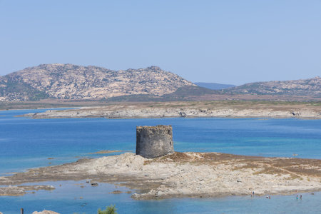 Stintino, turquoise sea water, coastline and tower. Sardinia, Italy
