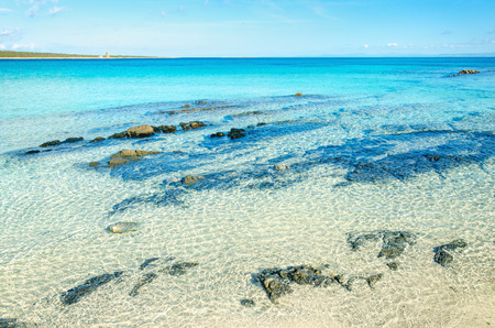 Blue and transparent sea in Porto Tramatzu beach, Teulada, Sardinia