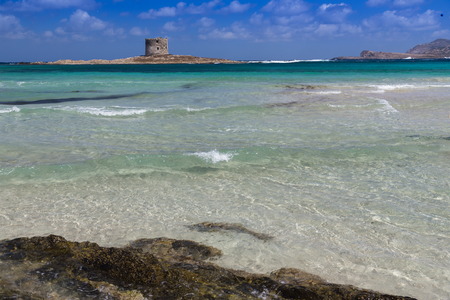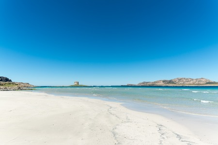 Amazing Pelosa beach, view of Pelosa Tower at Stintino, Sardinia italy