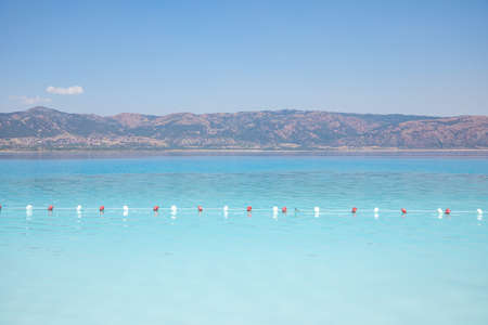 Lake Salda, Turkey. A popular place for recreation and tourism. White sand and blue water. Natural background.