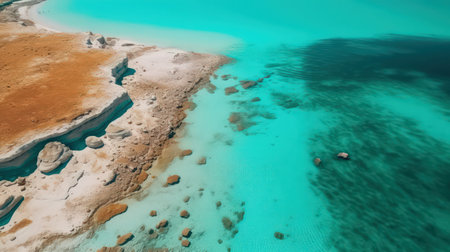 AI Generated. Aerial View of Turquoise Water Meeting Snowy Shoreline
