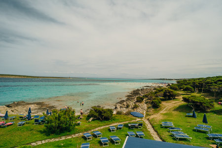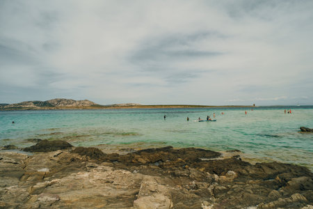 Holidays in Sardinia,crystal sea and people in the sea,sardinian sea,view of beautiful sea in Stintino, Sardinia,Italy Paradise, tropical island,clear sea on summer with amazing sky background