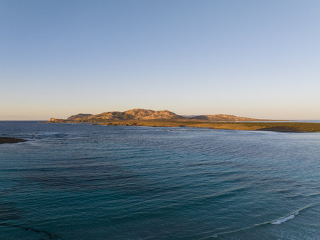 La Pelosa beach in Stintino in the northern part of Sardinia. Photos taken with a drone during the setting sun.