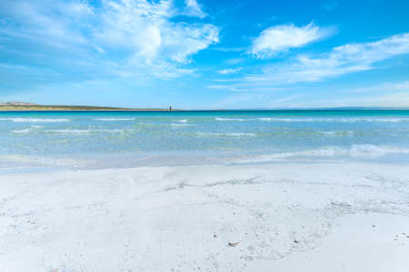 landscape of empty La Pelosa beach in a sunny day, with its white sand and clear water