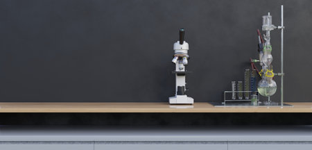Laboratory equipment and molecular model in a science lab during a research experiment