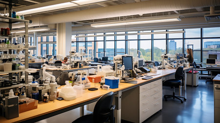 close-up of ultramodern materials science laboratory, with equipment and materials for groundbreaking research visible, created with generative ai