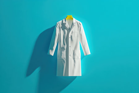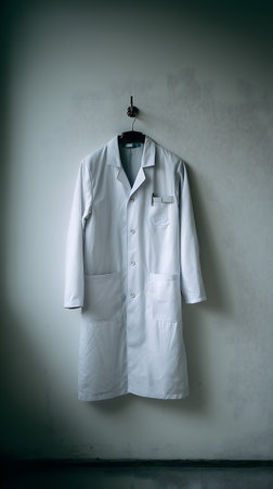 White male doctor coat hanging on the wall with shadow on the wall