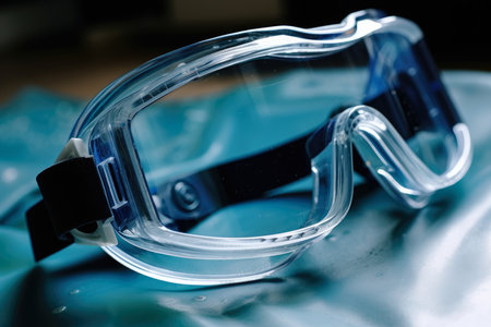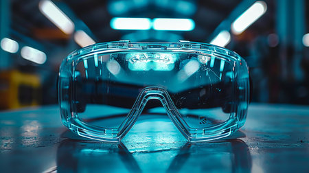 Detailed macro shot of protective safety goggles used in industrial settings