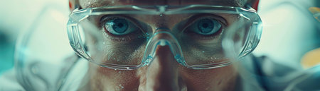 close-up of person wearing protective goggles