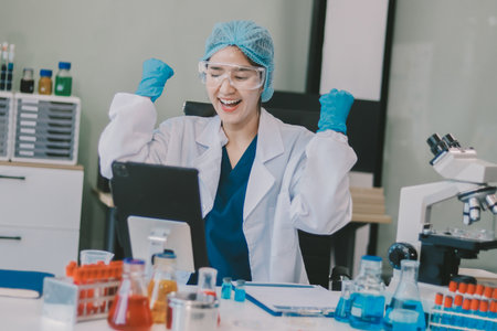 Female scientist are experimenting in the laboratory, science concept, virus, chemical.