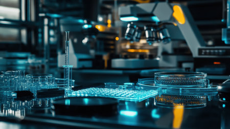 A modern laboratory workspace featuring advanced scientific tools and glassware. The image highlights a microscope, petri dishes, and essential equipment for various research activities, showcasing the innovation and precision in scientific exploration.