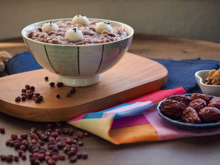 Korean food collection photo_Red Bean Porridge, a gruel made with red beans. dark red soup. 6