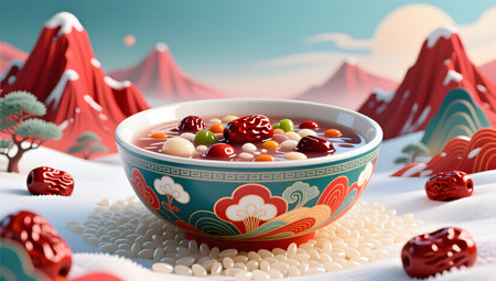 Chinese New Year, 3D Rendered Illustration of a Bowl of Red Bean Soup