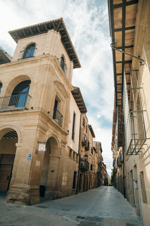 A vertical shot of a typical street in the city center in Laguardia, Alava, Spain