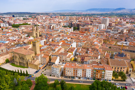 Panoramic view of tudela city showing ebro river meandering through navarra region