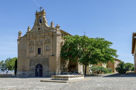 Overview of the town of Ujue in the autonomous community of Nacarra, with the fortress church of Santa Maria, a monumental complex of medieval origin