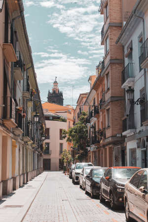 Valencia, Spain; June 11 2020: Street with cars in the neighborhood called Barrio del Carmen in Valencia.