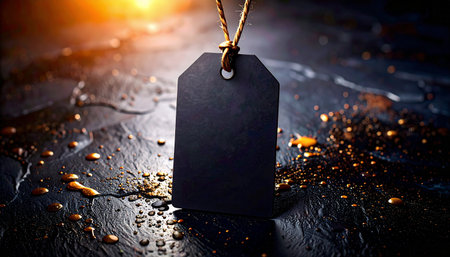 Subtle black tag on a dark, soft focus background, Black Friday concept