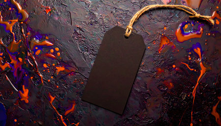 AI Generated. Blank Orange Tag Label with Jute String on Dark Textured Background